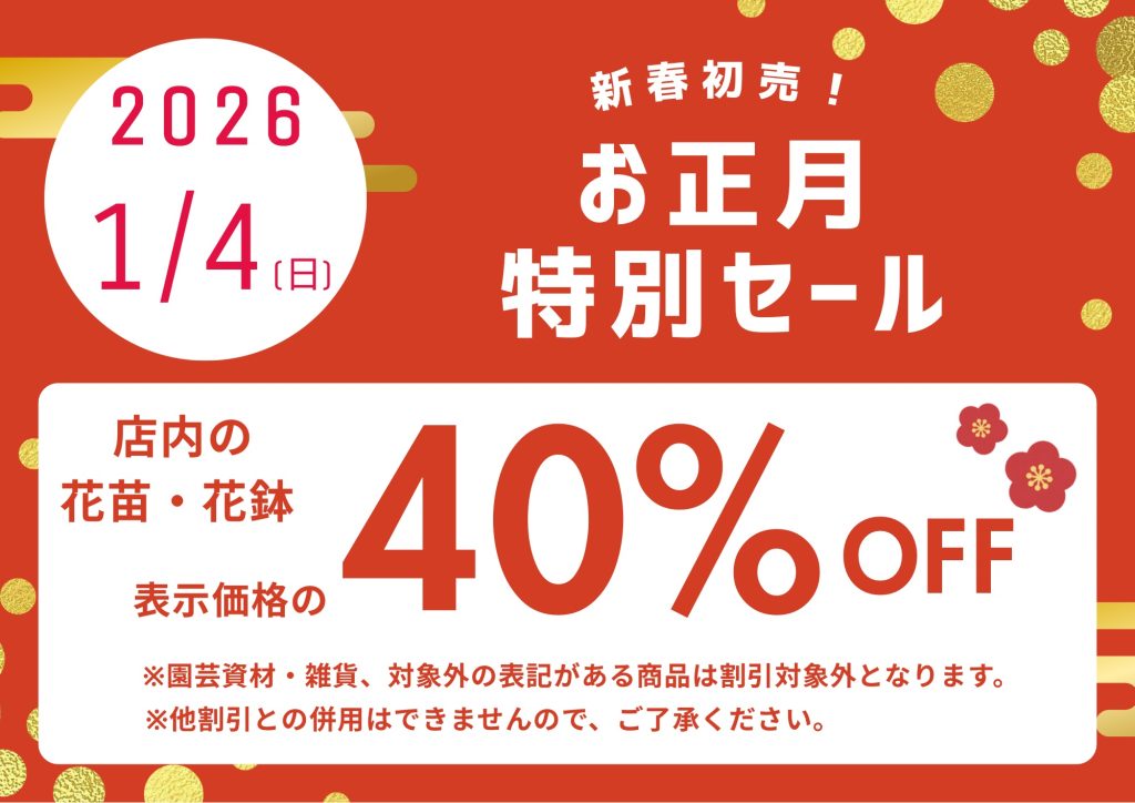 年の初めに、欲しかった花や苗などお得にゲットしてください。