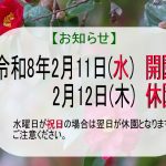 次の日2月12日(木)が休園となりますので、ご注意ください。