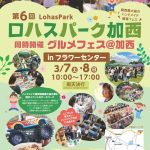 フラワーセンター園内で第6回ロハスパーク加西が開催されます。 日時:令和8年3月7日(土)、8日(日) 10:00~16:00 入園料:大人550円 ・障がい者100円 ・70歳以上 250円 ・高校生以下 無料 こだわ […]